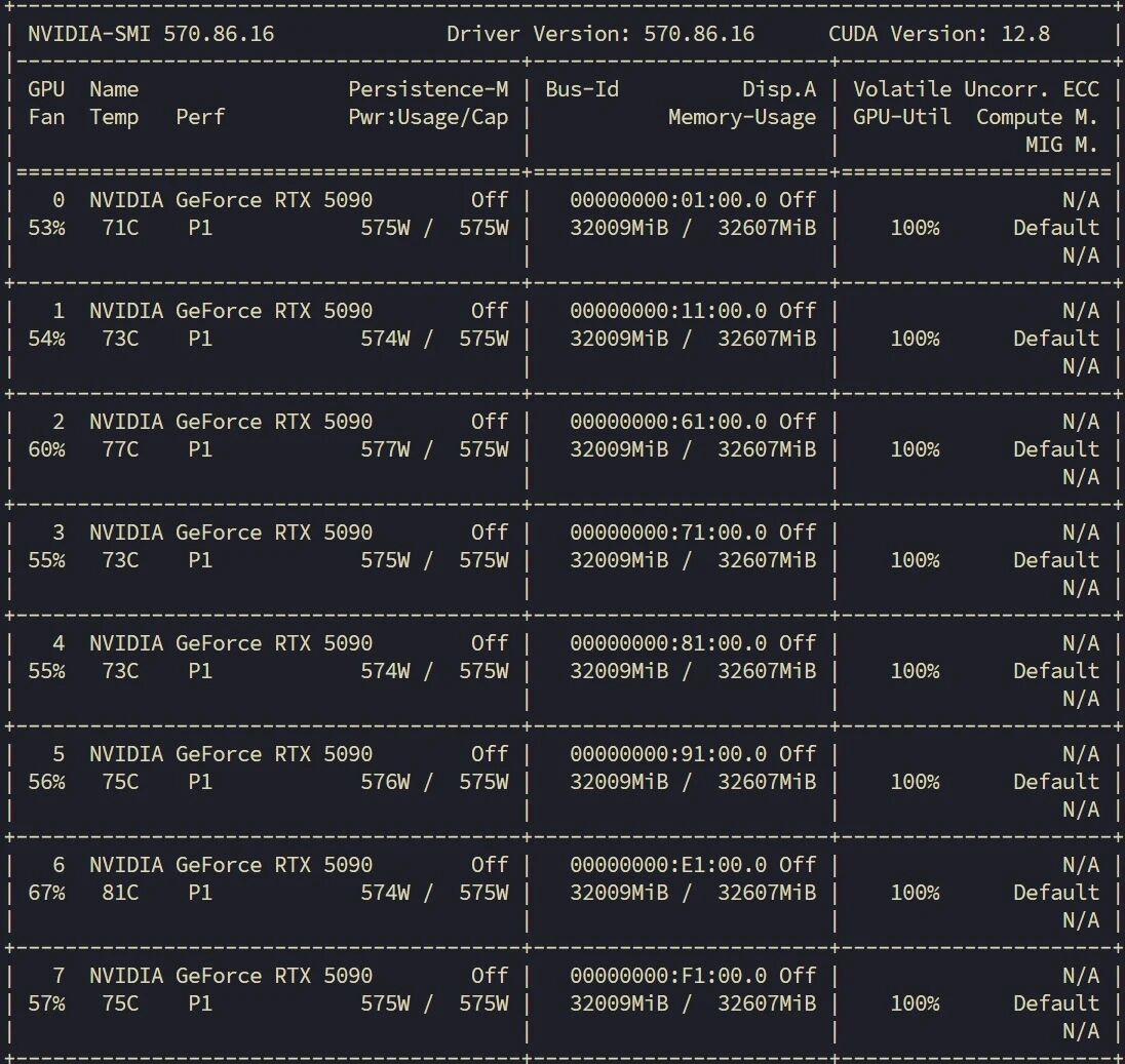 RTX 5090是一款基于Blackwell架构的兼具游戏和AI应用的高性能GPU卡,其拥有21760个CUDA核和680个Tensor核,32GB GDDR7大显存、1792GB/s显存带宽,支持FP4/FP8/FP16/FP32/FP64多种计算精度......