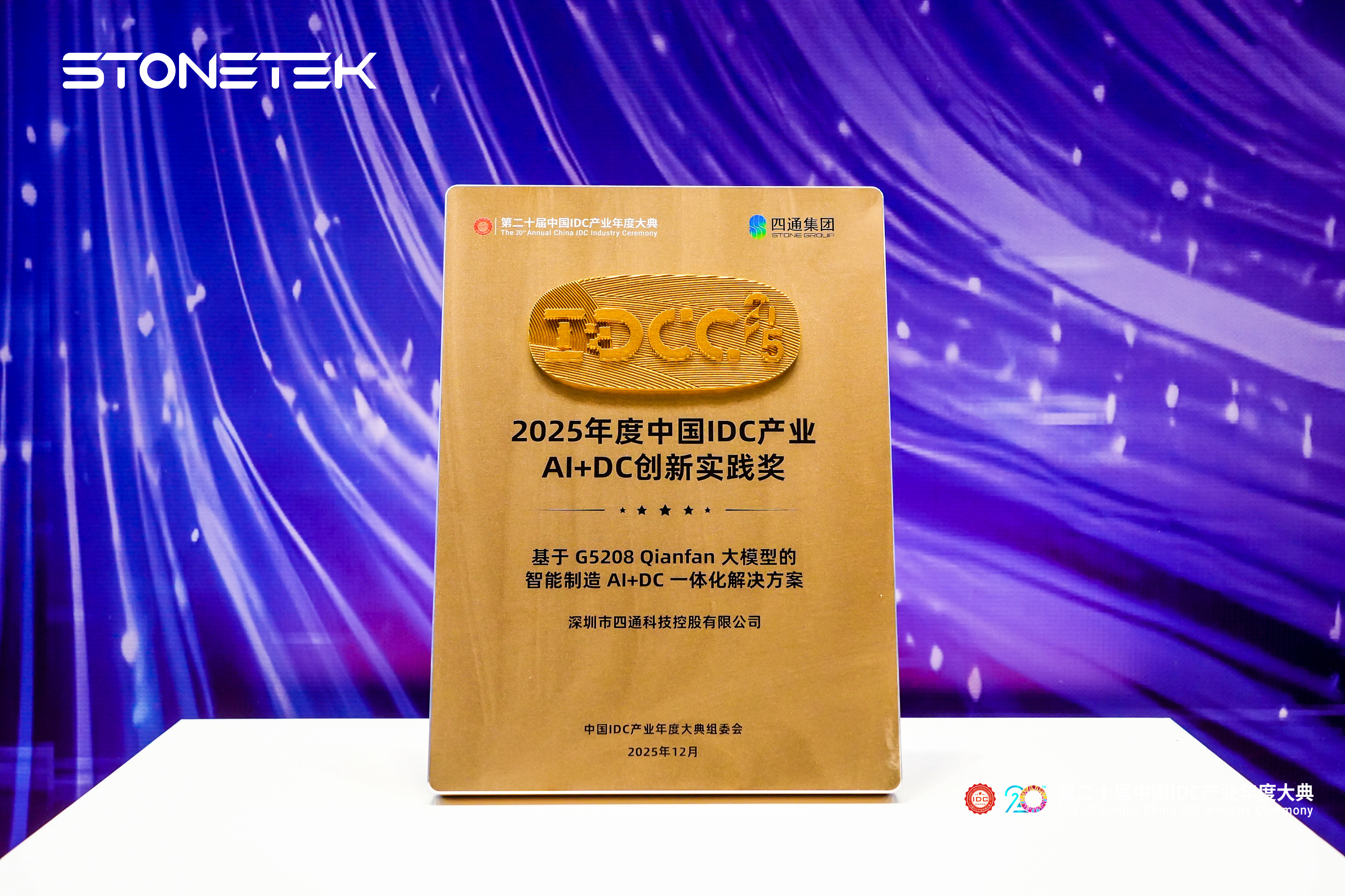 2025年度“中国IDC产业年度评选”颁奖典礼近日于北京隆重举行,集中表彰了一批在算力技术创新与产业融合方面取得突破的代表性企业和项目。其中,STONETEK G5208 Qianfan大模型的智能制造AI+DC一体化解决方案凭借其在智算融合与场景落地方面的突出表现,荣获“2025年度中国IDC产业AI+DC创新实践奖”。